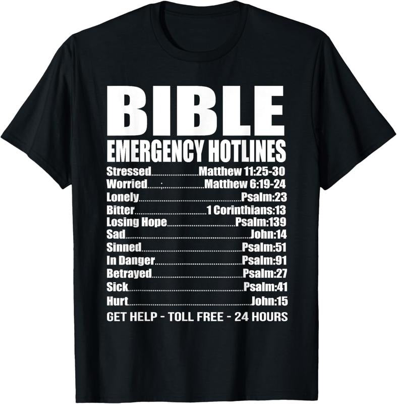 100% Cotton Bible Emergency Numbers Funny Hotline Christian Gift T-Shirt