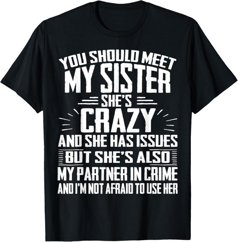 100% Cotton Funny Crazy Sister with Issues Partner In Crime Tshirt T-Shirt