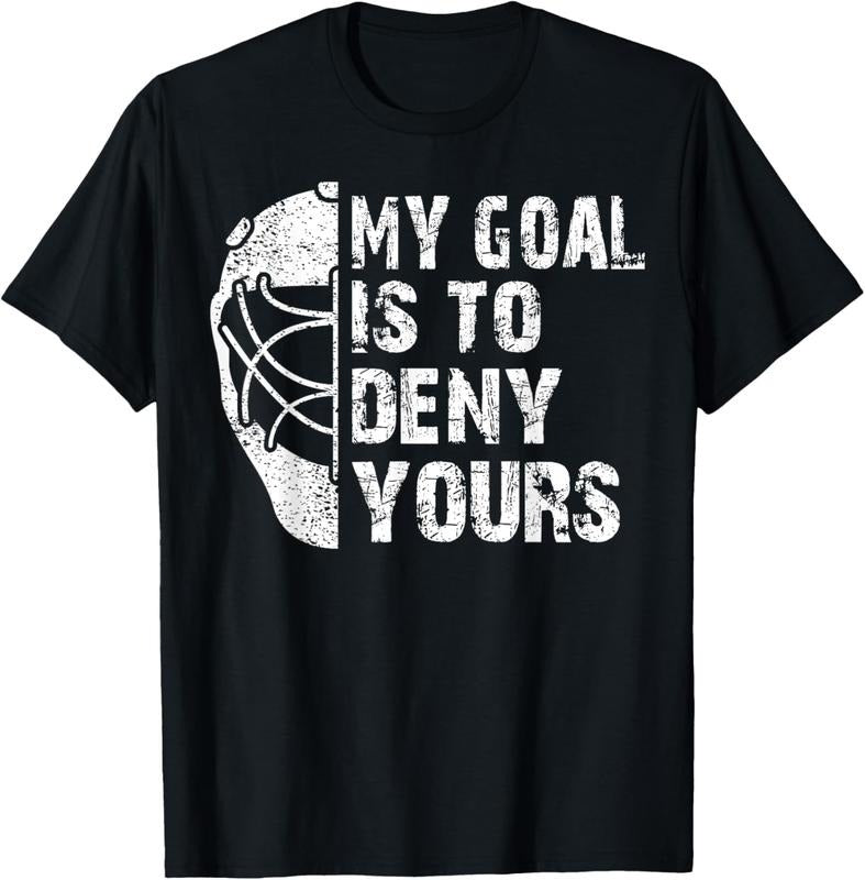 100% Cotton Funny My Goal Is To Deny Yours Hockey Goalie Ice Hockey Gift T-Shirt