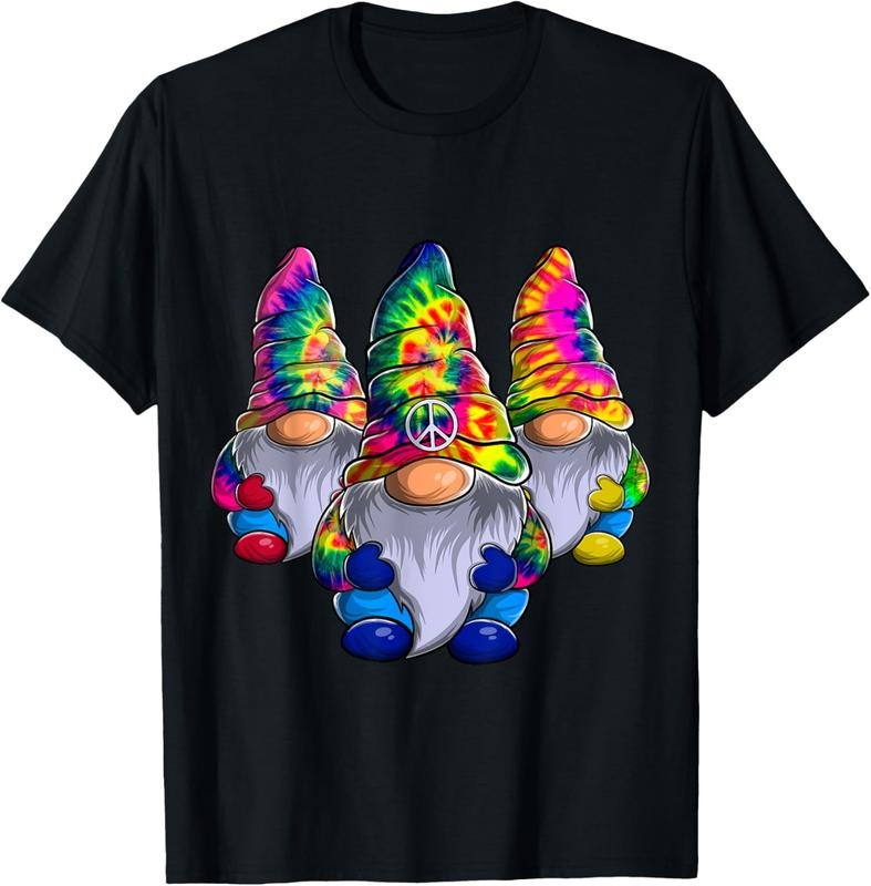 100% Cotton Three Hippie Gnomes Peace Gnome Funny Retro Tie Diy Design T-Shirt