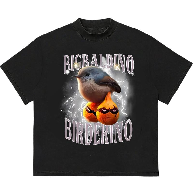Bigaldino Birderino T-Shirt Cotton Comfort Unisex Graphic Design Unique T-Shirt Gift for Her