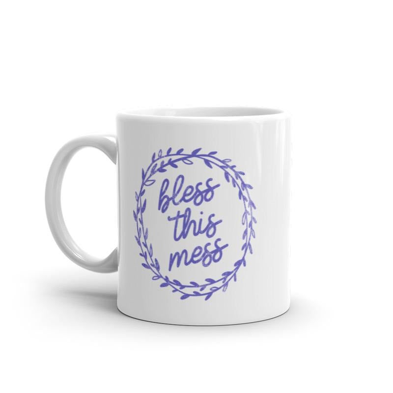 Bless This Mess Mug Funny Sarcastic Messy House Graphic Novelty Coffee Cup-11oz Funny Coffee Mugs Ceramic Printed Drinkware Cup