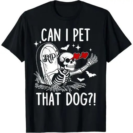 Can I Pet That Dog Skeleton Funny Dog Lover T-Shirt Made in USA