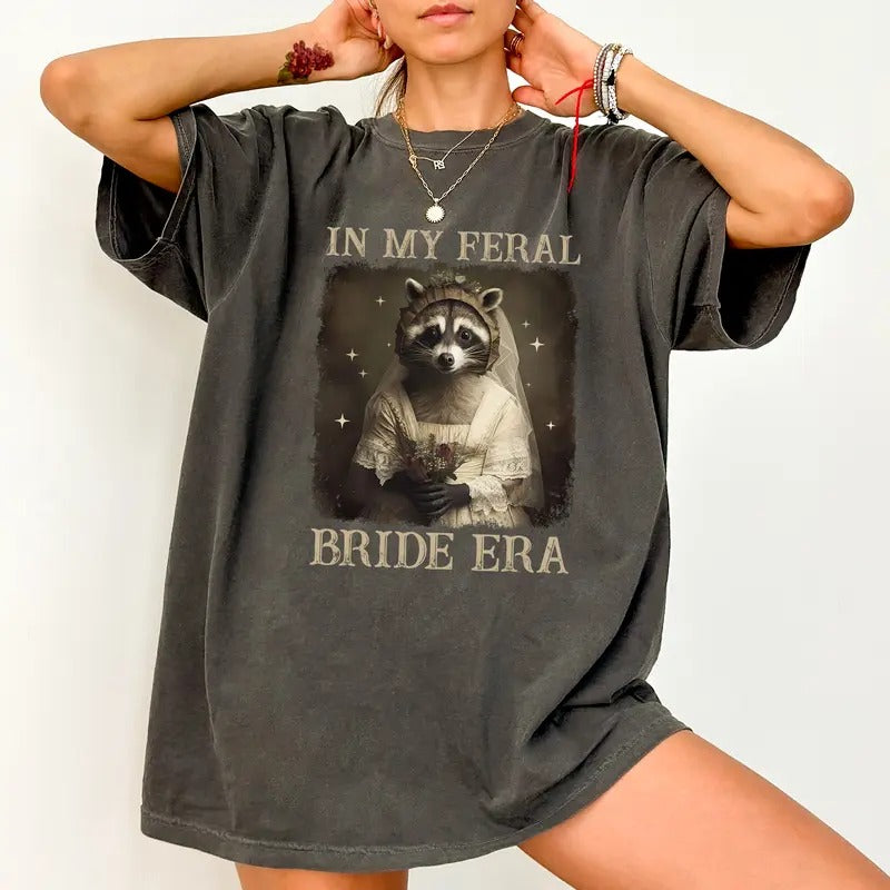 Comfort Colors In My Feral Bride Era Shirt, Retro Funny Bride Tee, Feral Raccoon Bride Era Shirt, Feral Raccoon Bride T-shirt, Bridal Meme Sweater, Bride to Be gift, Casual Womenswear, Oversized Women's Tops, Soft Cozy Fabric Sweatshirt