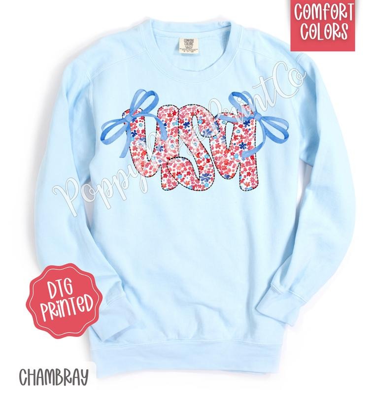Coquette USA Bow Comfort Colors Sweatshirt, Cute American Sweater, Girly Fourth Of July Crewneck
