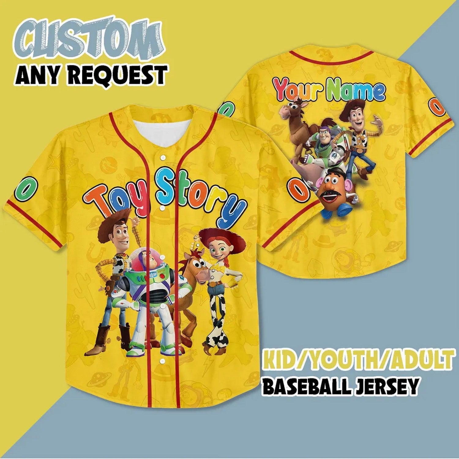 Custom Name Funny Toy Story Character Yellow Baseball Jersey