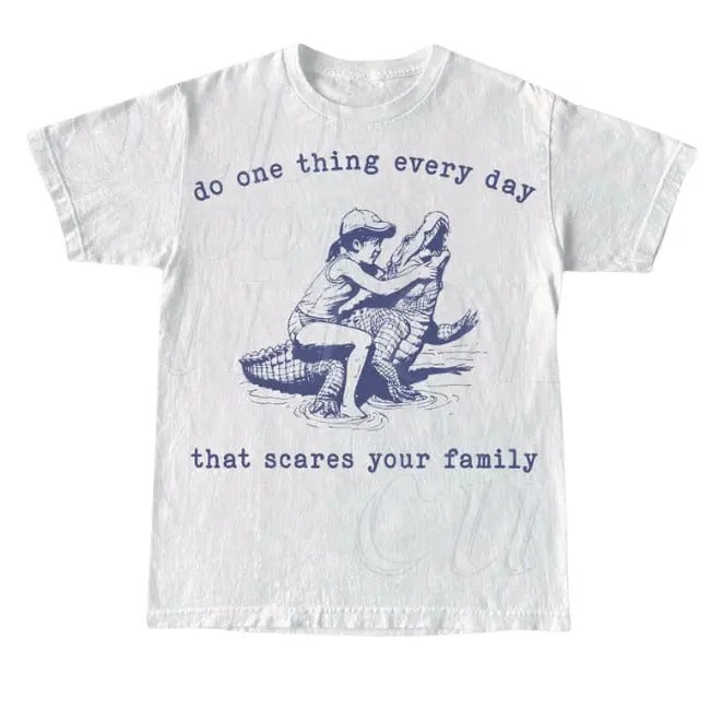 Do One Thing Every Day That Scares Your Family Retro T-Shirt, Vintage 90s Crocodile T-shirt, Funny 90s Shirt, gift for her Cotton Menswear