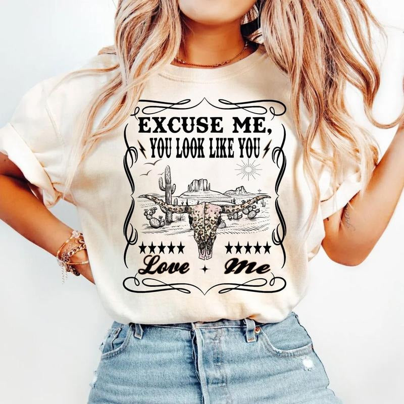 Excuse Me You Look Like You Love Me, Country Music Shirt, Whiskey Theme Graphic Tees, Retro Cowgirl, Trendy Western, Unisex Sweater Pullover Tee