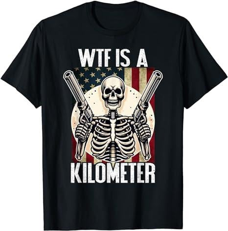 Funny 4th of July Shirts For Men, WTF Is A Kilometer July 4th Skeleton Funny Cringey USA Meme T-Shirt Menswear Top Casual Cotton Fashion Basic