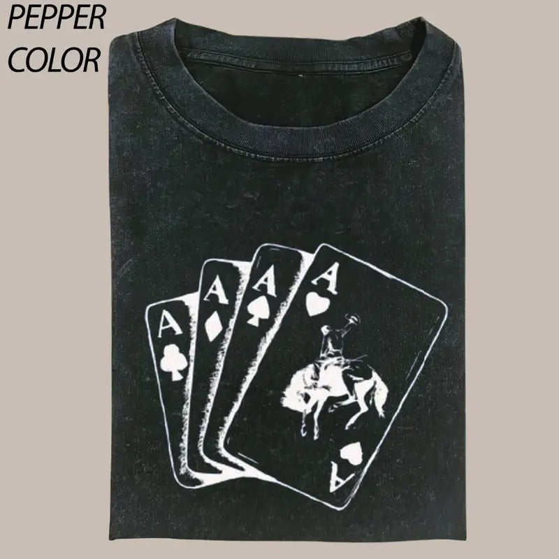 Funny Ace Card Cowboy T-shirt, Playing Card Shirt,Vintage Poker Graphic Tee Gift For Boyfriend Menswear Top Streetwear