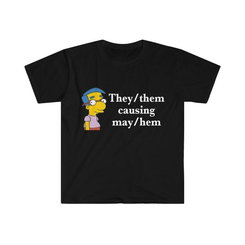 Funny Meme Shirt, Millhouse They/them causing may/hem Tee, Gift Unisex T-Shirt