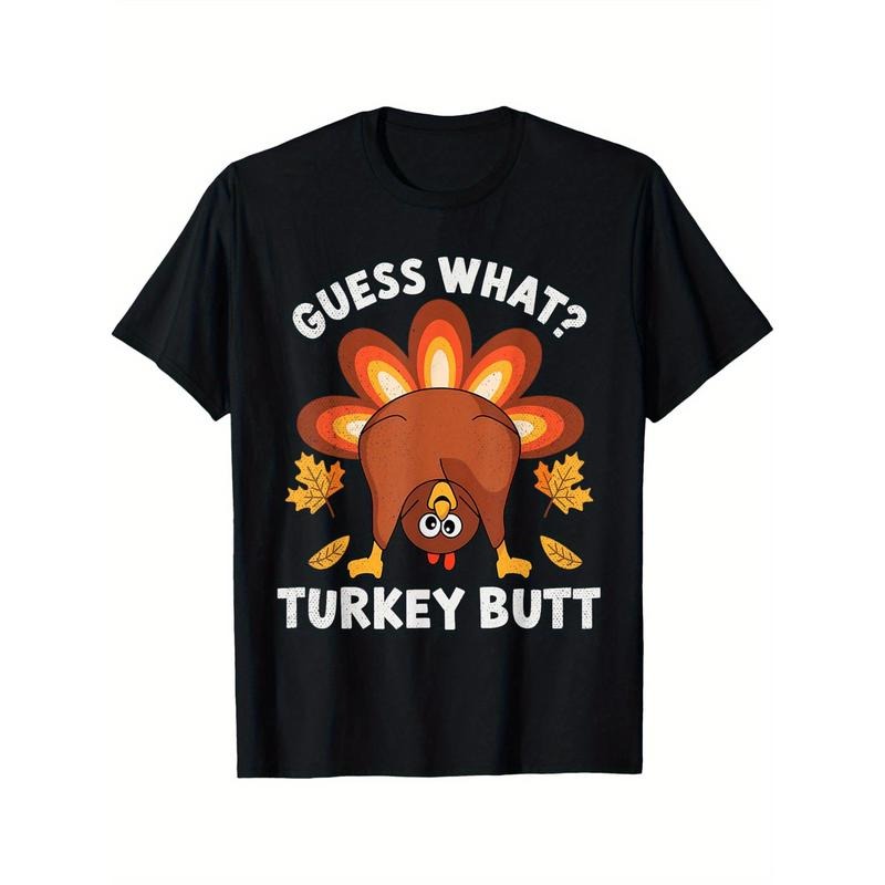 Funny Thanksgiving Guess What Turkey Butt Funny Turkey Tee T-Shirt Black casual short sleeve men's sport T-shirt 220g made in usa