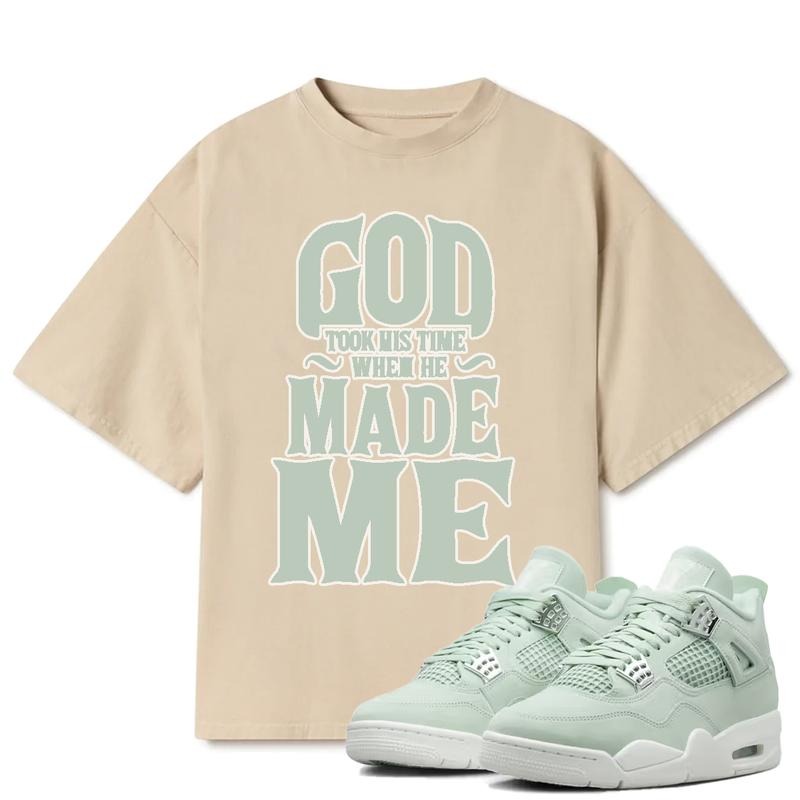 God Made Me Match 4s Seafoam Outfits Sneakers, Y2K Cotton T-shirt, Unisex Fitted Graphic Tee for a Streetwear Statement