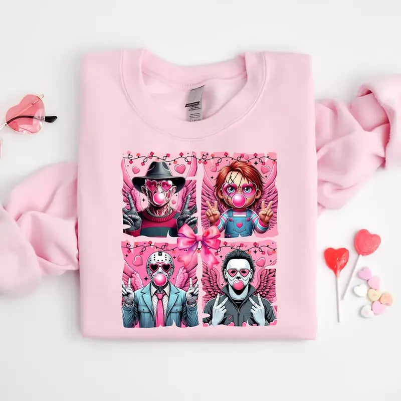 Halloween Characters Valentine Sweatshirt, Trendy Valentine Halloween Themed T-Shirt, Valentine Tee Shirt, Funny Valentine Shirt, Valentine's Day Gift