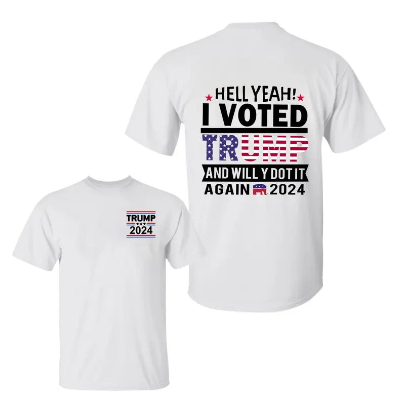 Hell Yeah, I Voted Truump And Will Y Dot It Again 2024 Two Side T-Shirt, Trummp 2024 Shirt, Sarcastic Graphic Tee, Unisex Classic Cotton Tee with a Two-Sided Graphic Print in All Sizes