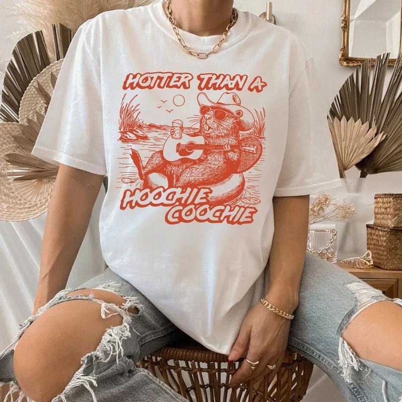 Hoochie Coochie Shirt Hotter Than A Hoochie Coochie TShirt 90s Country Music Shirt For Women Ladies Cute Beaver Shirt Beach Summer Theme Unisex Tee