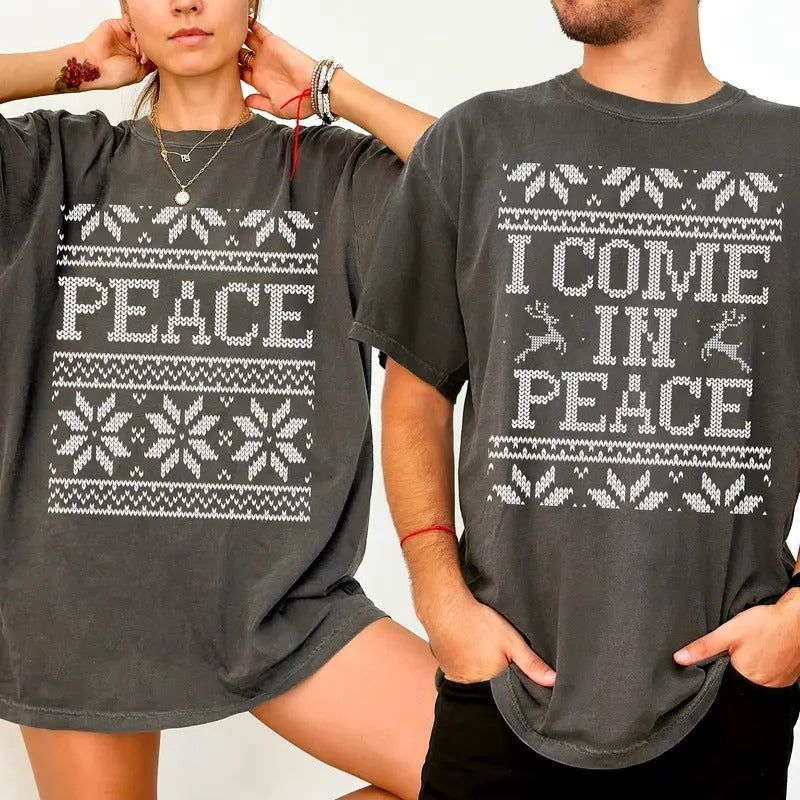 I Come In Peace T-shirt Comfort Colors, Christmas Couple Matching Shirt, Peace Tshirt, Adult Humor Tees, Funny Holiday Couple Tops, Xmas Party Outfits