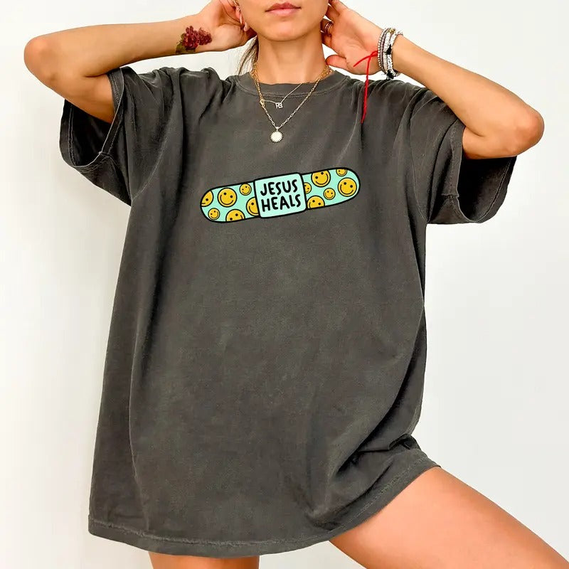 Jesus Heals Comfort Colors Shirt, Spiritual Unisex Graphic Tee, God Heals T-Shirt, Christian Gift Idea, Religious Clothing