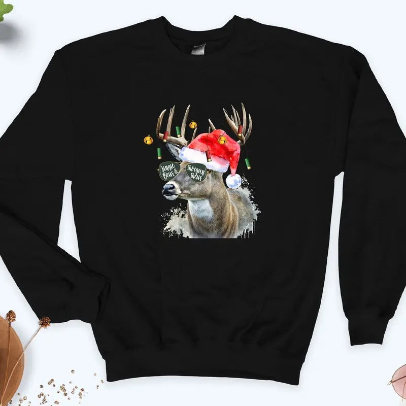 Jingle Bells Shotgun Shells Sweatshirt, Christmas Deer Hunting Sweater, Deer Hunter Gifts, Christmas Hunter, Rudolph Sweater, Gift For Him