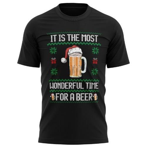 Most Wonderful Time For A Beer Christmas T Shirt, Fair Isle Christmas Top for Men, Funny Xmas T Shirt Tshirts Top Tee Gift Gifts made in usa