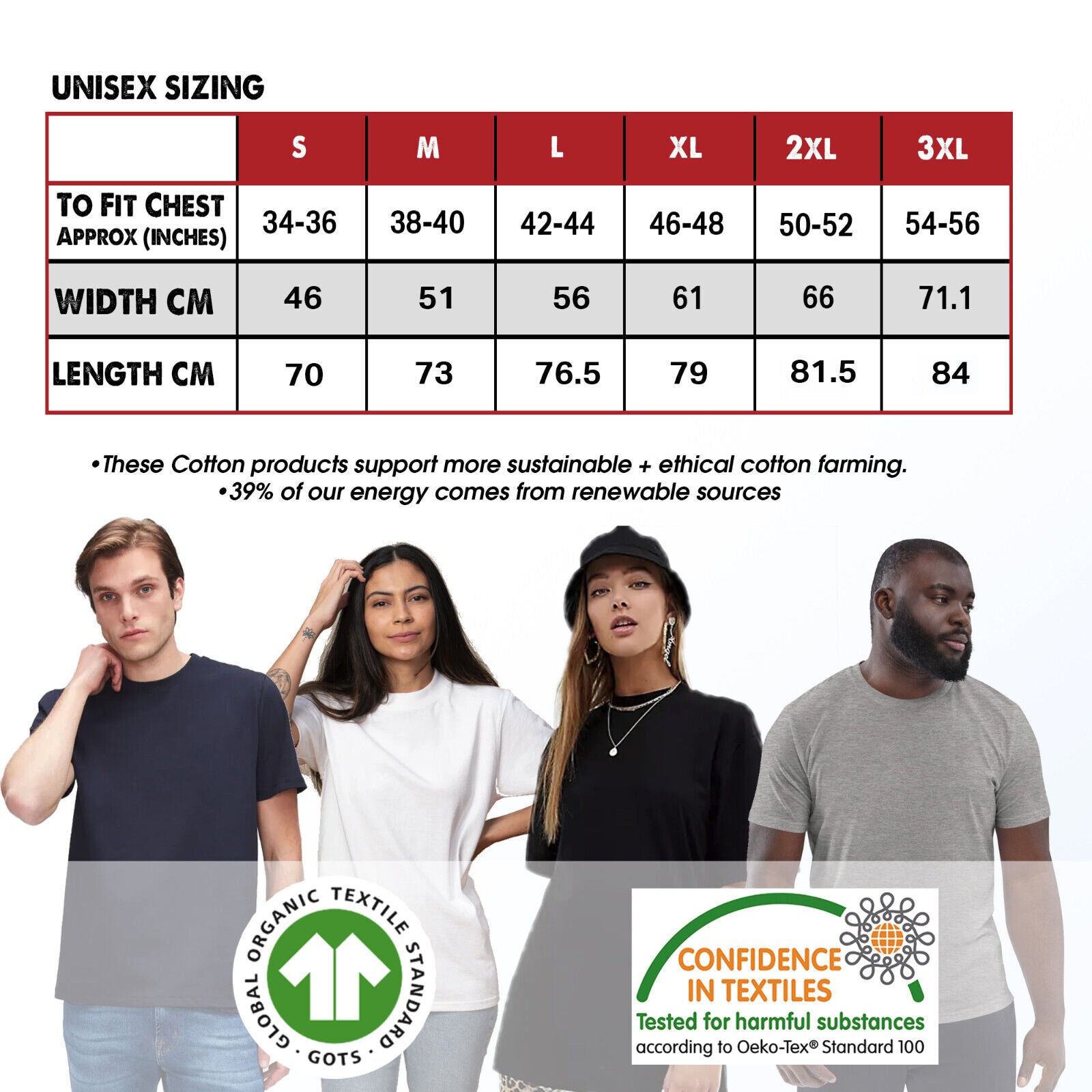 - T-Shirts: 100% cotton – soft, breathable, and durable.