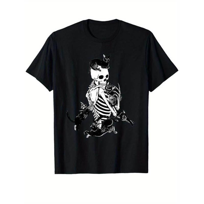 Skeleton Print Men's Cotton T-shirt, Graphic Tee Men's Outdoor Clothes, Men's Halloween Clothing, Casual Short Sleeve Crew Neck T-shirt, Tops For Men, Gift For Men made in usastyle{n002}15
