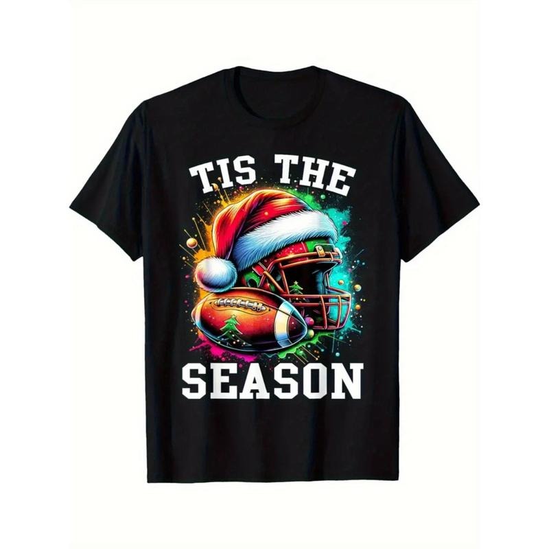 "Tis The Season Football Men's Christmas T-Shirt with Santa Hat" made in usastyle{n002}3