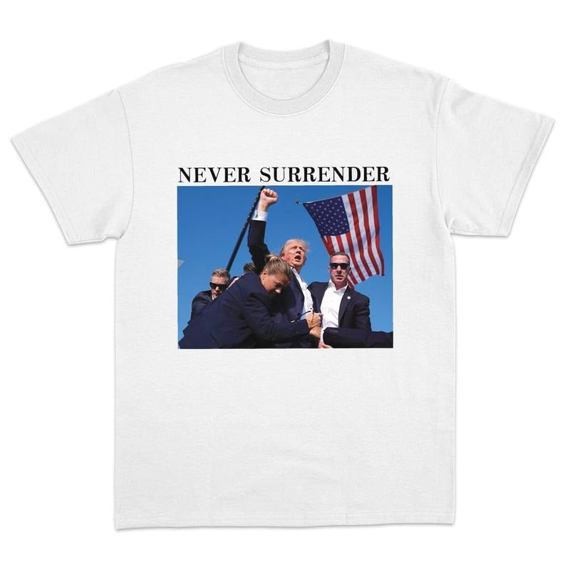 Trum Rally Shooter - Trum Never Surrender Shirt - Trum 2024 USA Freedom Republican Shirt Pro Trum Make American Great Again Unisex T-Shirt Shortsleeve Menswear Top