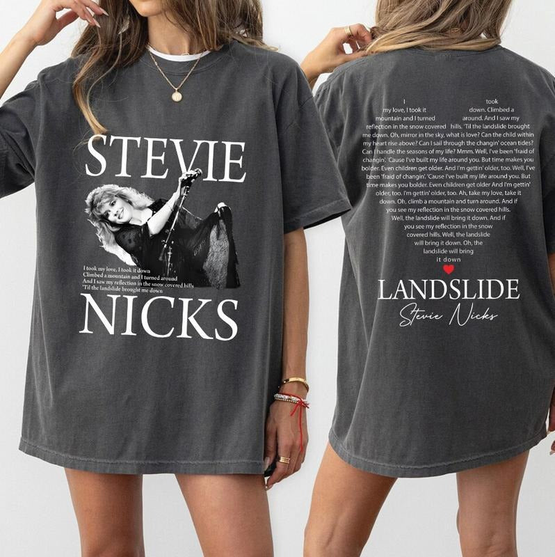 Vintage Retro Classic Landslide Song Lyrics T-Shirt, Heart Design Front & Back, Music Lover Gift Tee, Retro 70s Classic Rock Apparel Top