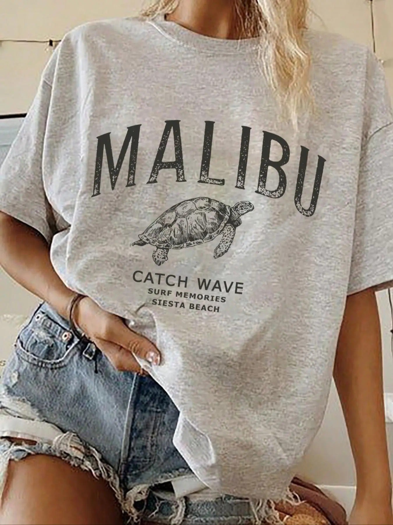Women's Cartoon Turtle Graphic Print Round Neck Tee, Fashion Casual Drop Shoulder Short Sleeve T-shirt, Ladies Summer Clothes for Daily Wear