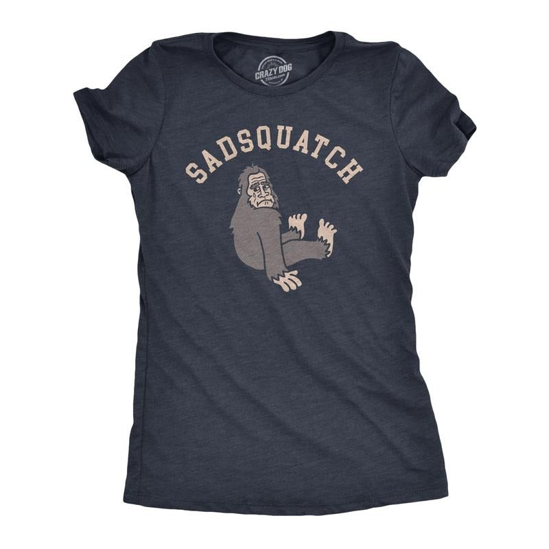 Womens Sadsquatch T Shirt Funny Depressed Crying Big Foot Joke Tee for Ladies Funny Womens T Shirts Cute Slimming Top Comfortable Soft Womenswear Funny Sarcastic Top Women's Novelty Tees Navy -
