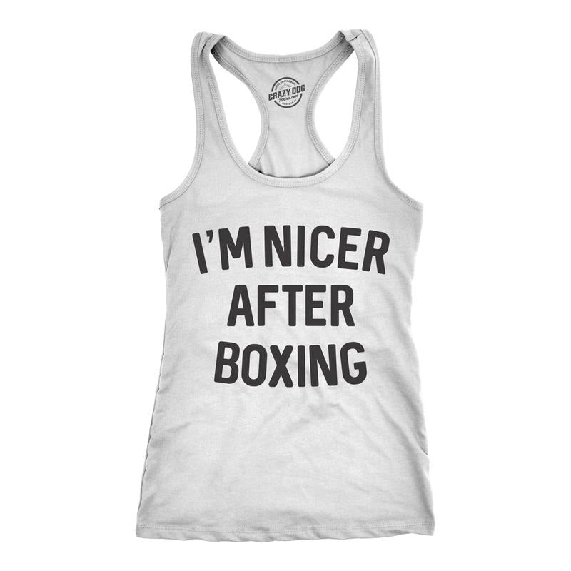 Womens Tank Im Nicer After Boxing Tanktop Funny Sarcastic Fitness Workout Top Funny Racerback Tank Cute Slimming Tank tops comfortable soft top Sarcastic Tank Top for Women Funny Fitness Sleeveless White