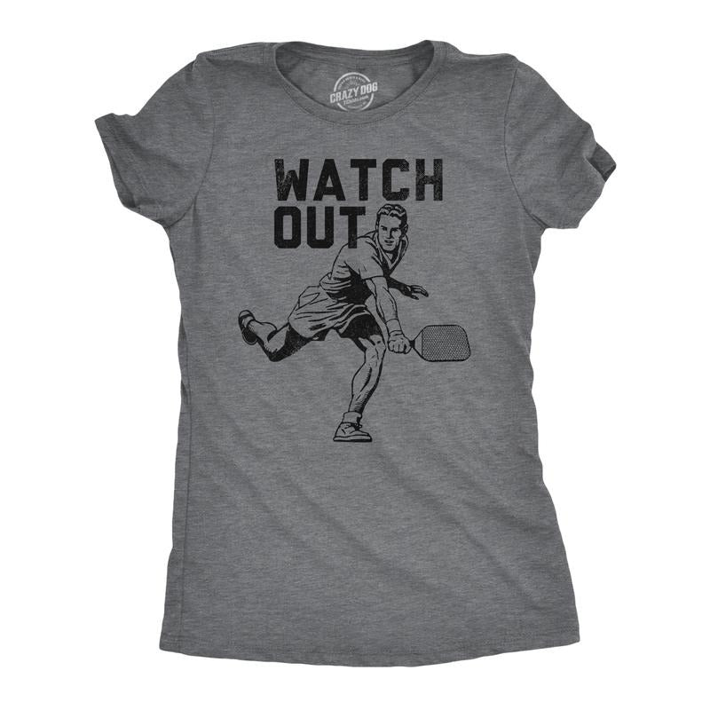 Womens Watch Out T Shirt Funny Pickleball Player Serve Joke Tee For Ladies Funny Womens T Shirts Cute Slimming Top Comfortable Soft Womenswear Pickle Ball Tops for Women Funny Sarcastic Top Women's Dark Grey