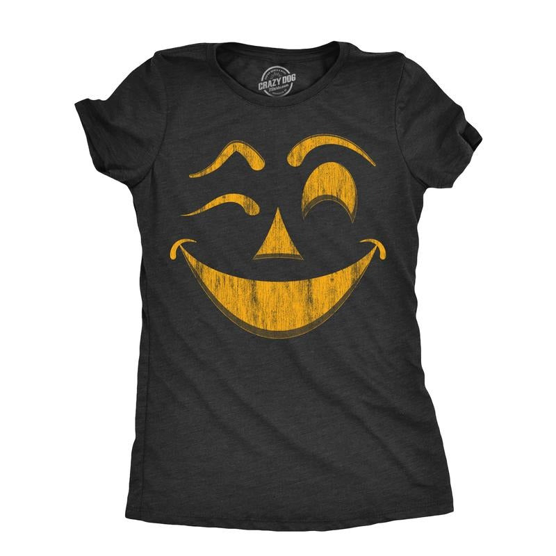 Womens Winky Warren Pumpkin T Shirt Funny Halloween Jack O Lantern Unsettling Smile Tee For Ladies Funny Womens T Shirts Cute Slimming Top Comfortable Soft Womenswear Halloween Tops for Women Women's Black -