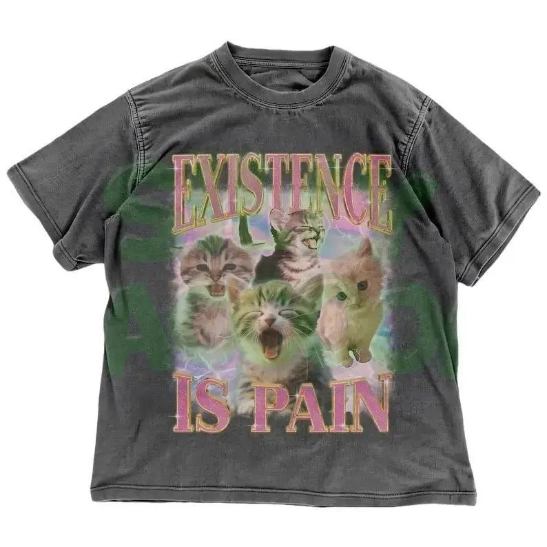 Y2K Cat Meme Shirt | Existence Is Pain | Edgy Sarcastic Shirt | Existential Dark Humor Graphic Tee | Ironic Kitten Tee | Gag Gift 100% cotton Menswear